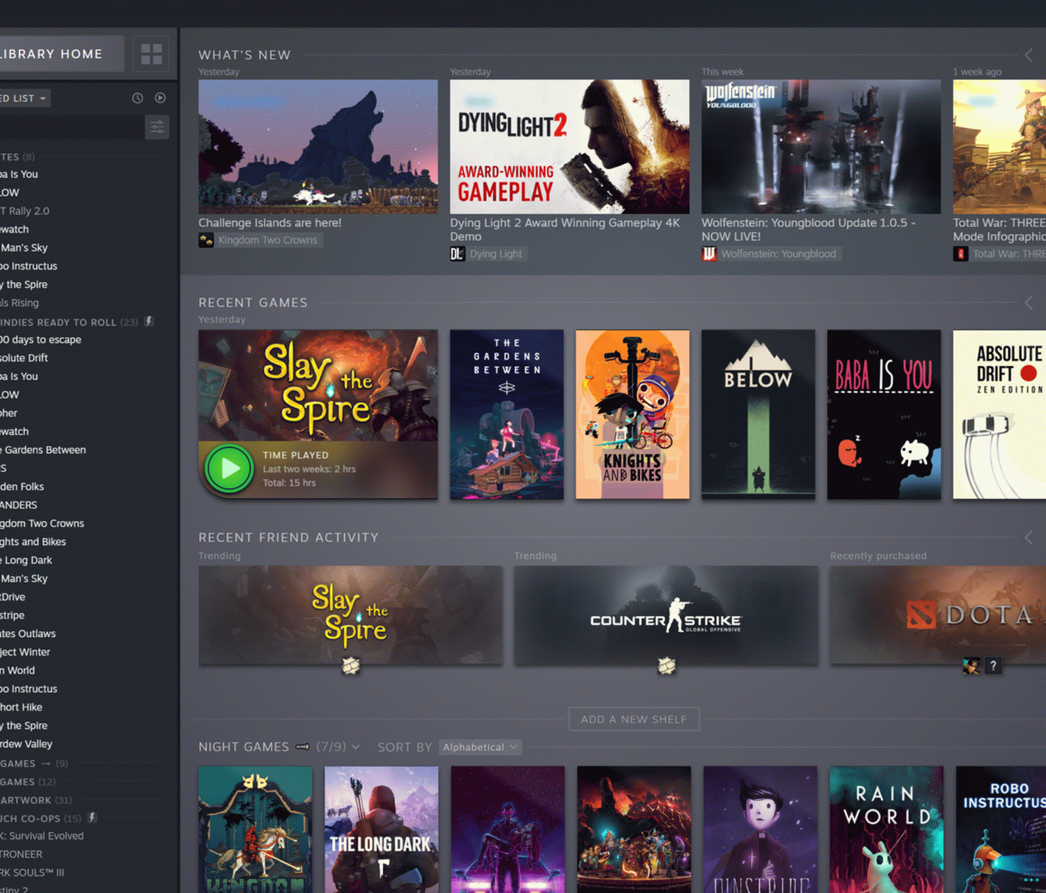 Ако нисте упознати са Стеамом, ово би могло изгледати као било која колекција дигиталних игара Али за вернике Стеам, ова “Библиотека” ажурирање је масиван ремонт. Леви панел је у основи исто као и пре, са списком игара заснованих на абецедном реду наруџба, недавно репродукована или друге методе сортирања. Али сада десна плоча подразумевано подразумева сморгасборд података за игре за вас већ поседујем.