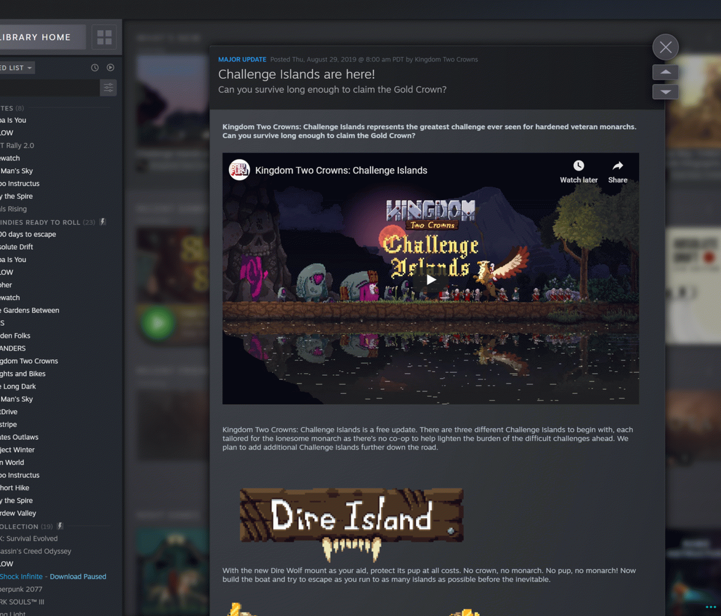 У новом интерфејсу кликните на било коју игру и добићете а масивно дизајниран заокрет на тексту претходне библиотеке Стеам РСС феед. Произвођачи игара ће имати могућност прављења блиставих, временски ограничени транспаренти за догађаје, као што се види овде.