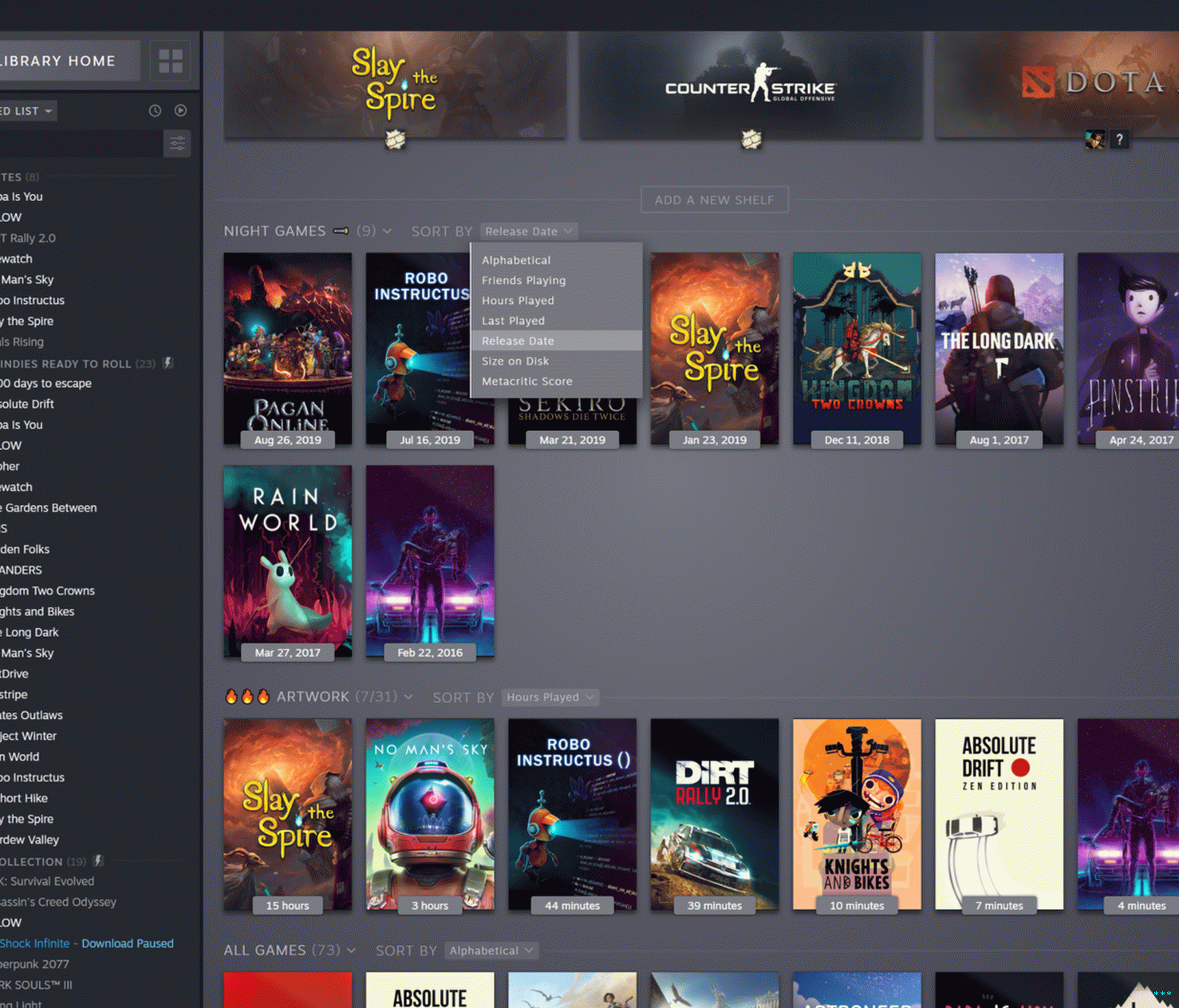 Такође можете да креирате и поставите „динамичне колекције“. Не само да ови моментално стварају полицу кутија (заједно са текстом) листа са леве стране) такође се повећавају када добијете нове игре које стави филтере.