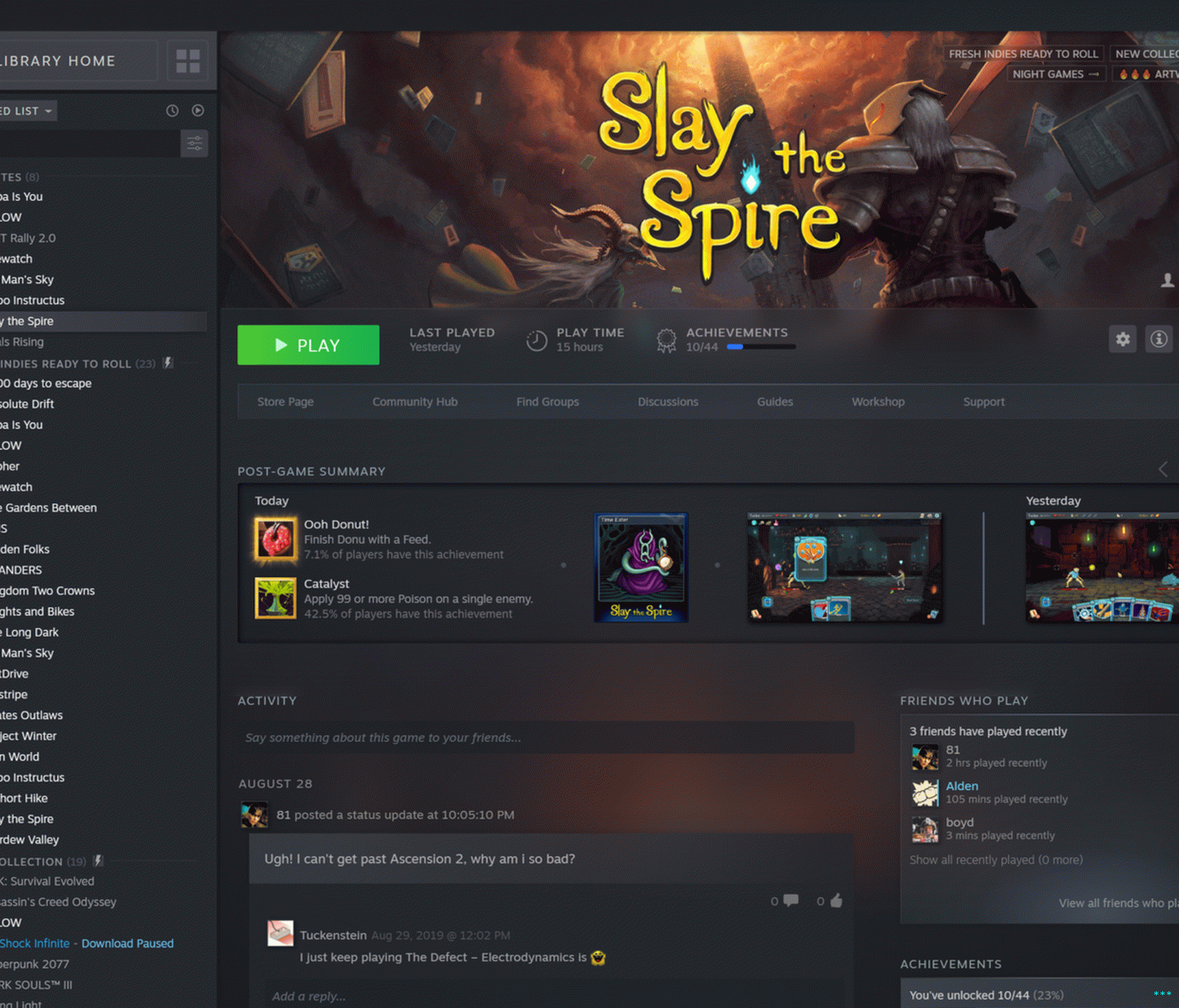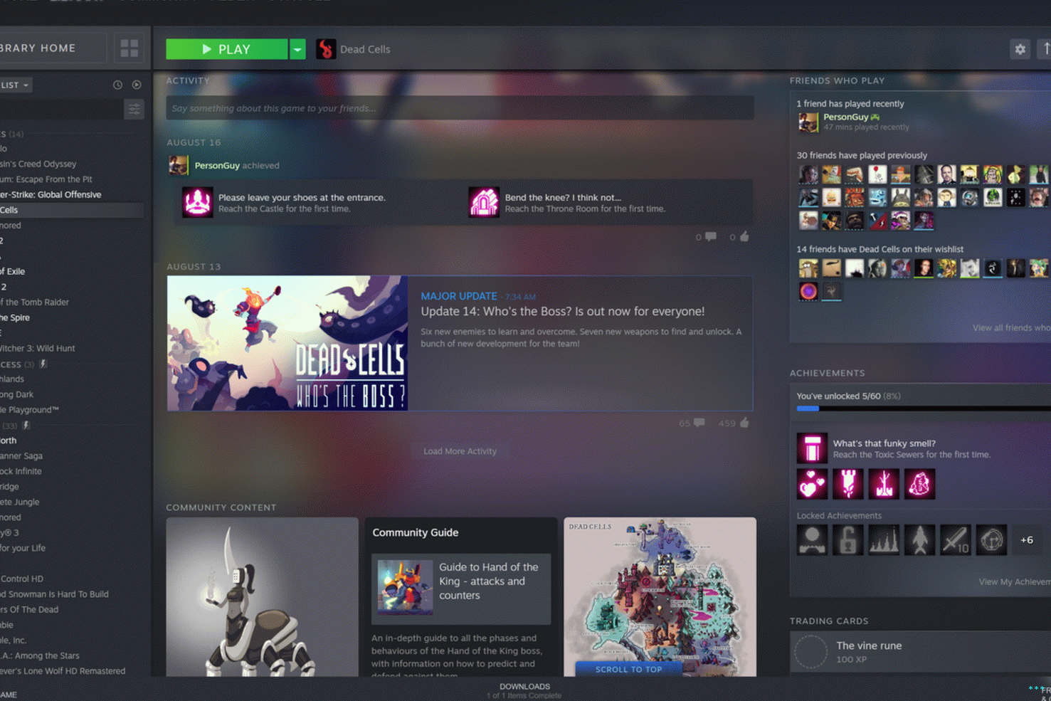 И да, након што одаберете игру, још мало појављује се познати интерфејс. Као и пре, ове листе специфичне за игре долазе са релевантним новостима и информације о игри ваших пријатеља. Али сада је све било поново наручени на логичнији начин. Ако је велики догађај уживо, турнир, продаја или друга временски ограничена најава, то може појављују се на самом врху, према дискрецији програмера. Још неколико Након тога слиједе ажурирања за вијести о играма и тада се приказује приказ подјељене колоне релевантније информације: уплоади пријатеља у вези са игром, лична достигнућа, картице за трговање и нови „резиме после игре“ приказ који заокружује детаље о игри, не само из ваших најновијих сесији, али од прошле недеље, протеклог месеца и више.